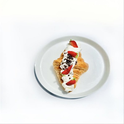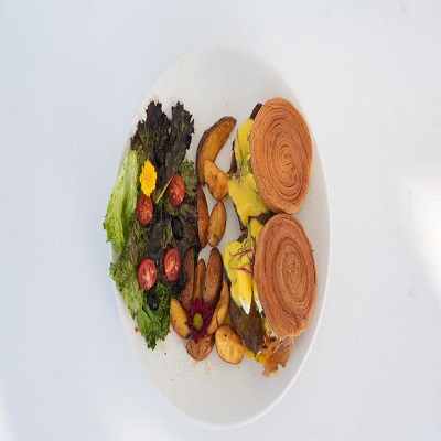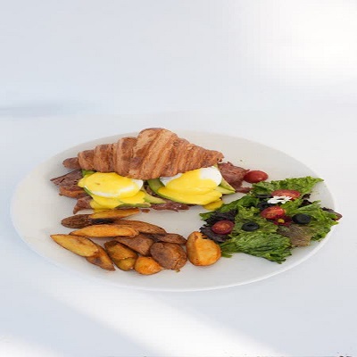 کروسان ،پنير مزه دار، بيکن آووکادو، تخم مرغ پوچد، سس هالندايز، سيب زميني کريسپي، سالاد کاهو ،چاي