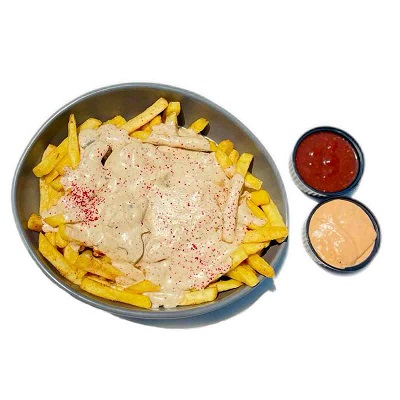 500 گرم سيب زميني، ديپ چدار،سس كچاپ مزه دار شده،سس الدورادو.