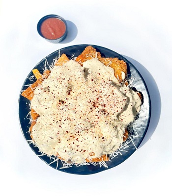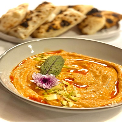 حمص،روغن چيلي،نان كاري،آووكادو.