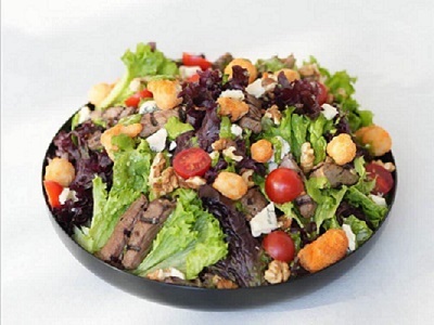 کاهو پيچ ،فيله گوساله ،گوجه چري ، پنير بلو چيز ،سس ريحان بلو چيز ،گردو ،نان کروتانز ، کاهو فرانسه