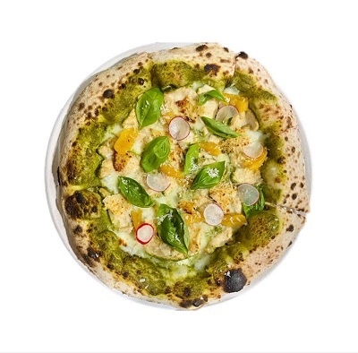 خمير ناپوليتن ،پنير ناپوليتن ،شنيتسل سينه مرغ ، سس پستو ،بيبي اسفناج ، آلو قيسي ، پارمسان