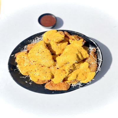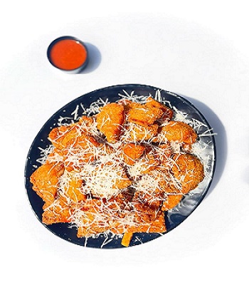 سيب زميني سرخ شده 500گرم ، شنيتسل سوخاري 500گرم ، سس چيلي تاي ، پارمسان ، مناسب براي 2 نفر
