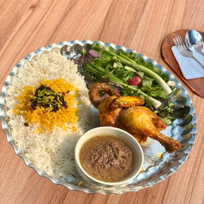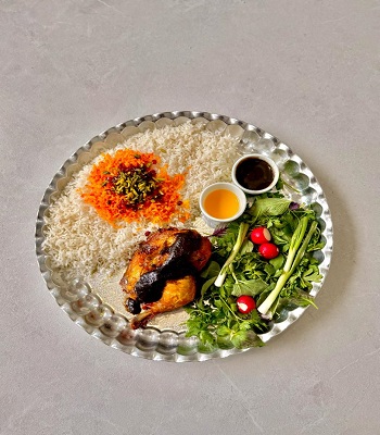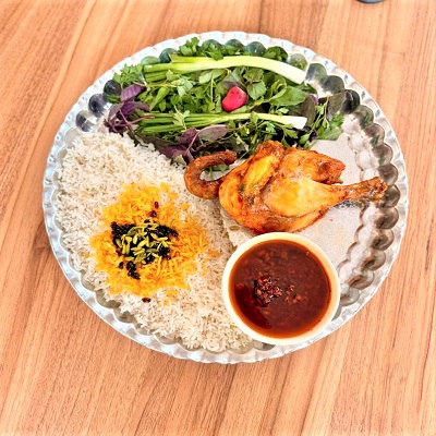 نيم مرغ اکبر جوجه اي ، سس آلو انار ، دورچين
