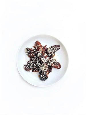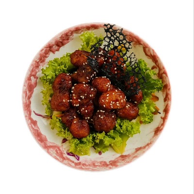 بال جا افتاده در سس ترياكي،كلم كريسپي، كنجد.