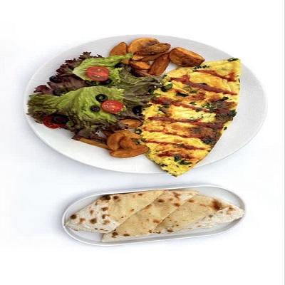 تخم مرغ 3عدد ، سالاد کاهو، سيب زميني ،نان ، اسفناج ، چاي