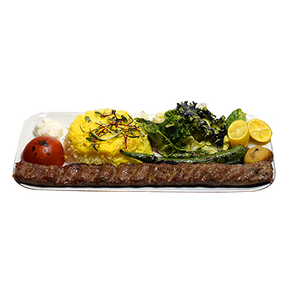 گوشت چرخ كرده گوسفندي+چلوكته زعفراني +كره+دورچين...