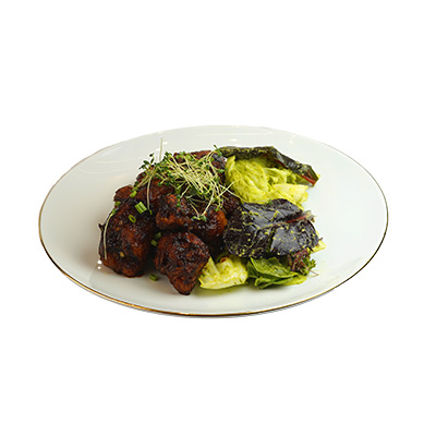 فيله مرغ سوخاري شده با سس باربيكيو +سبزيجات...