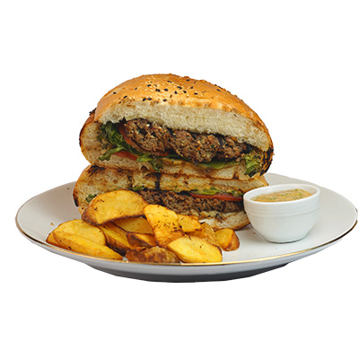گوشت گوساله+نان مك + سس قارچ +پنير گودا +خيارشور+گوجه....