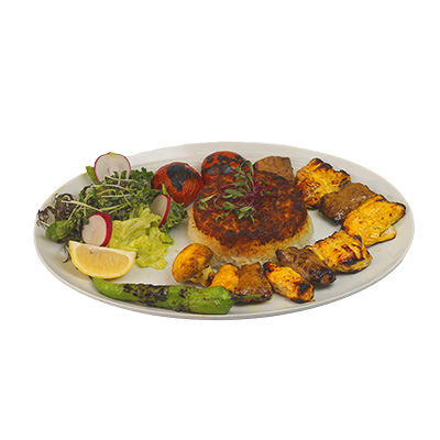 فيله گوسفندي+فيله مرغ+چلو كته زعفراني+دورچين +كره ....